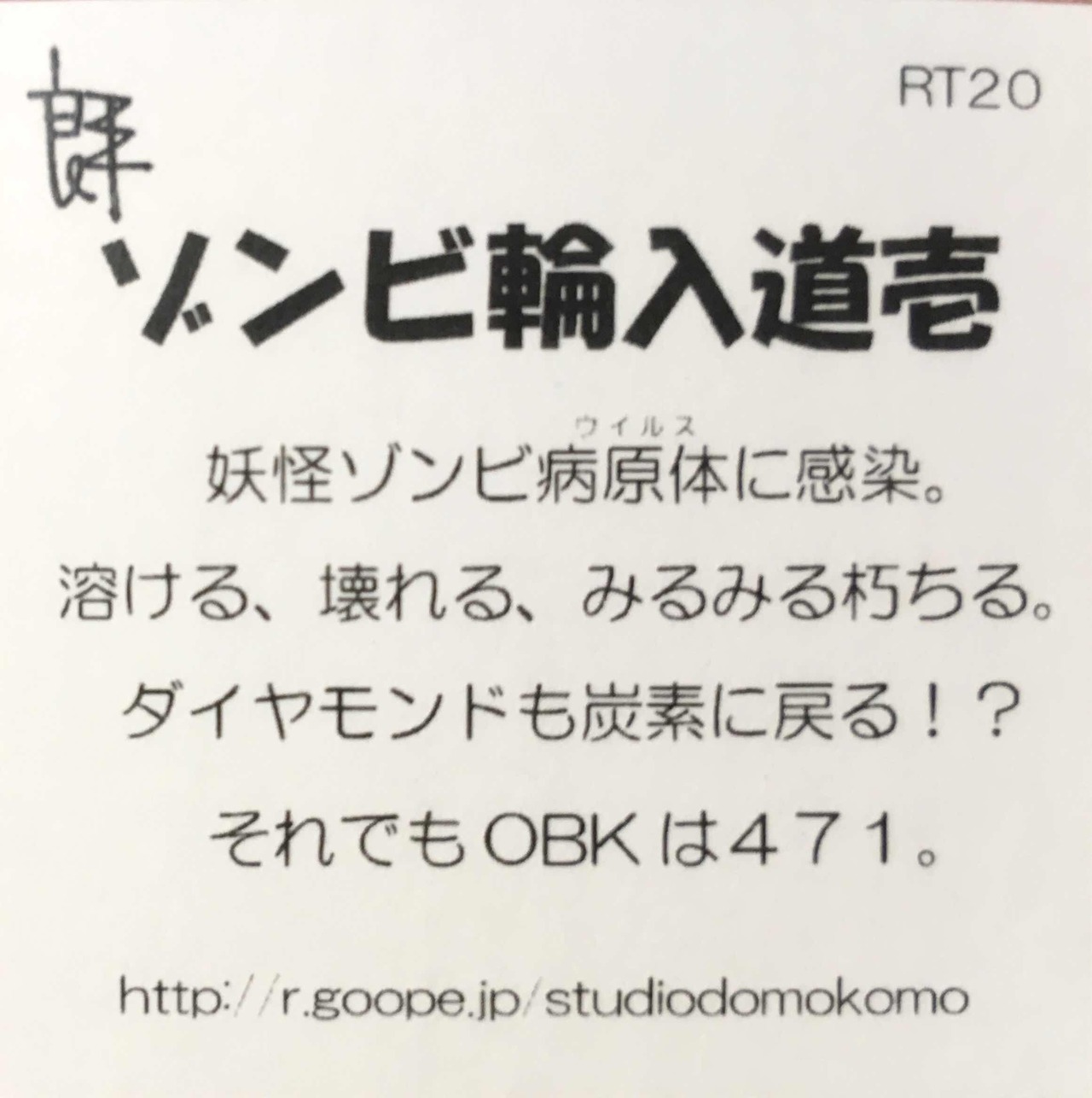 【田中良平】RT20 ゾンビ輪入道壱 シール
