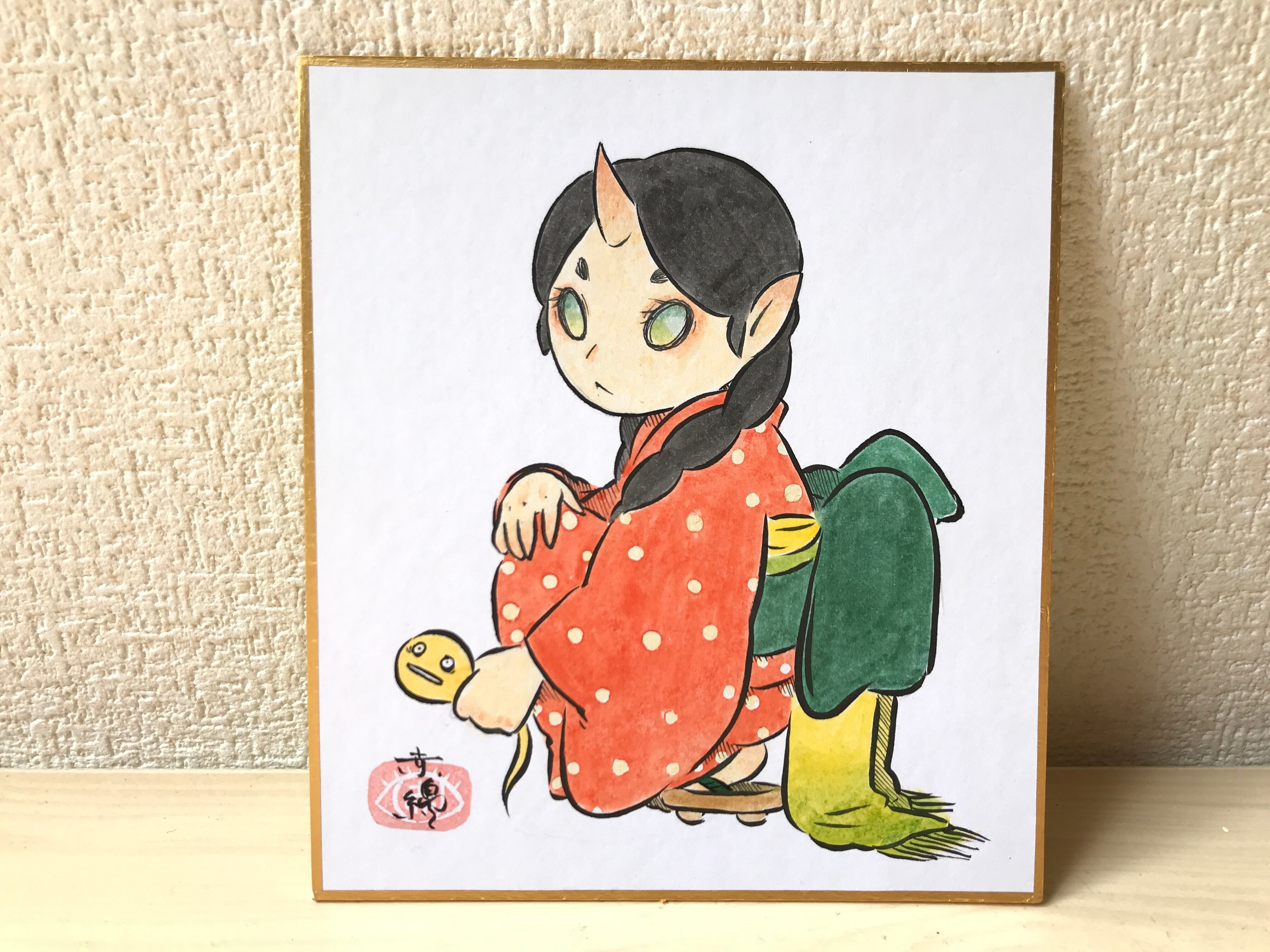 【赤綿】鬼娘ちゃん(ミニ色紙)