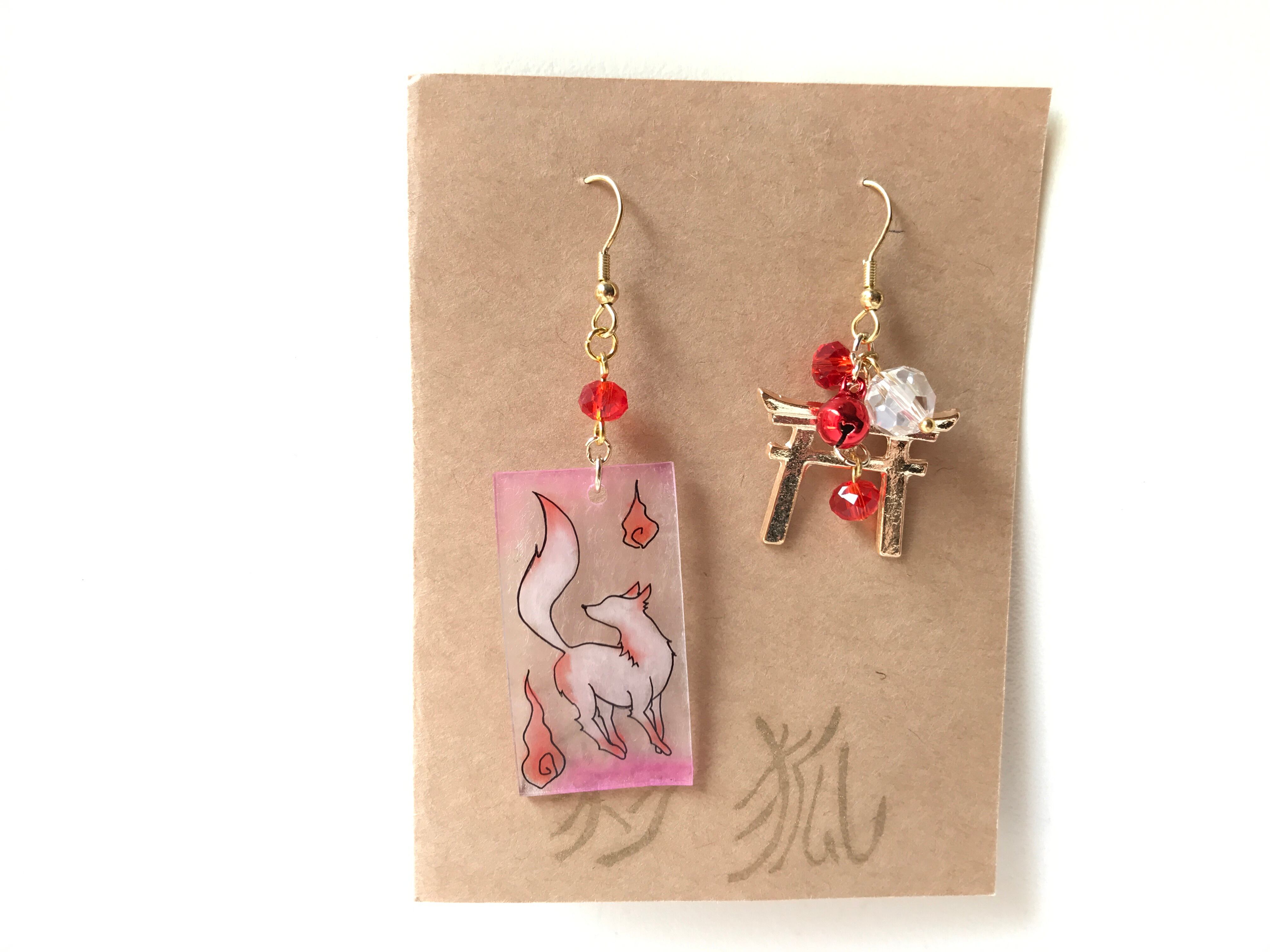 彩狐謹製。狐札と鳥居のセットのイヤリングです。