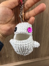 素材:綿100%糸、目は着色貝ボタン、バックチャーム金具付き