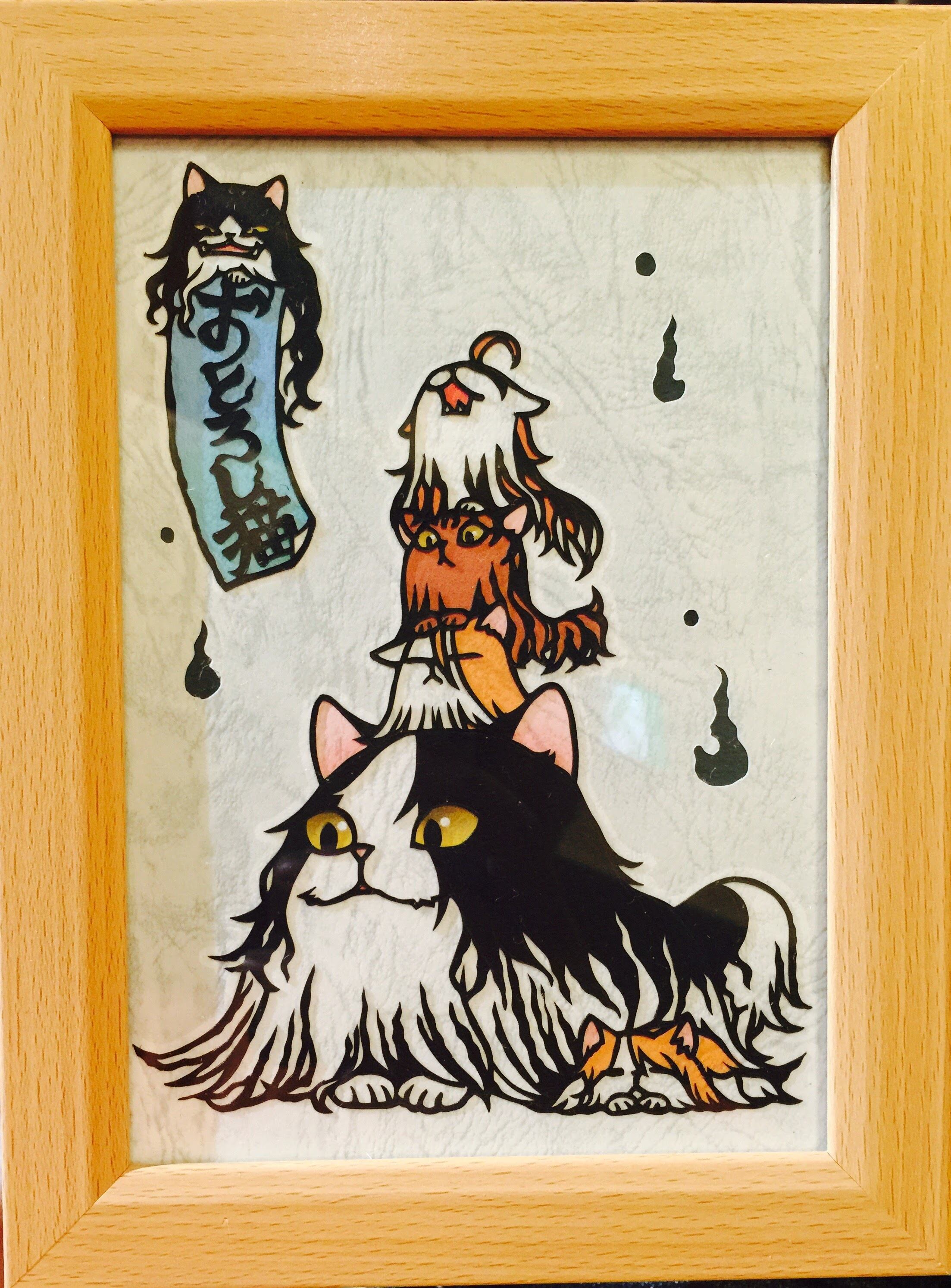 切り絵でデザインされたYuminoの原画作品。一点もの、額付きです。