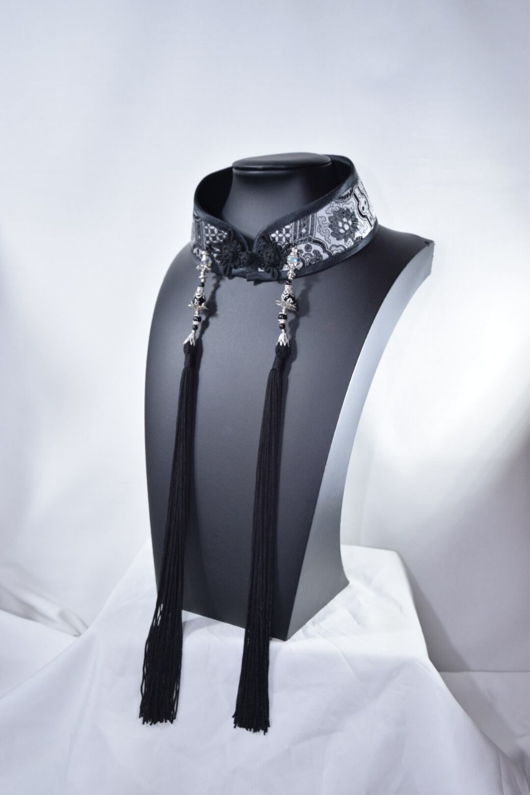 作品名:0215-SC007 中華襟チョーカー M(黒銀蓮)