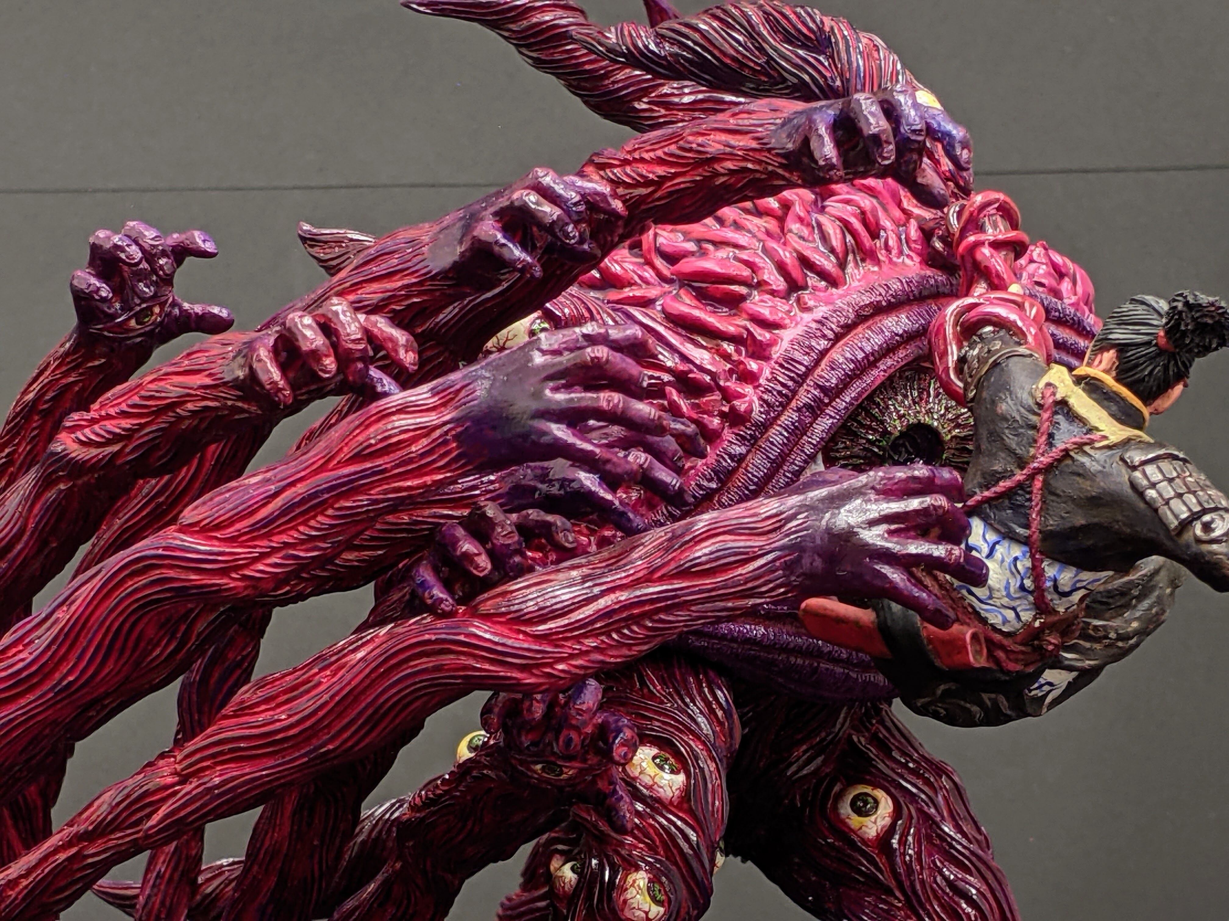 ガンQ:魔頭鬼十朗幻州は、その妖怪性を強調した造形にしてあります。錦田小十朗景竜を襲う10本の手は、全て右手で掌に眼球があります。これは、ガイア第31話において、人間体の魔頭鬼十朗幻州が右手にガンQを宿らせており、その掌に眼球があった事に基づいています。