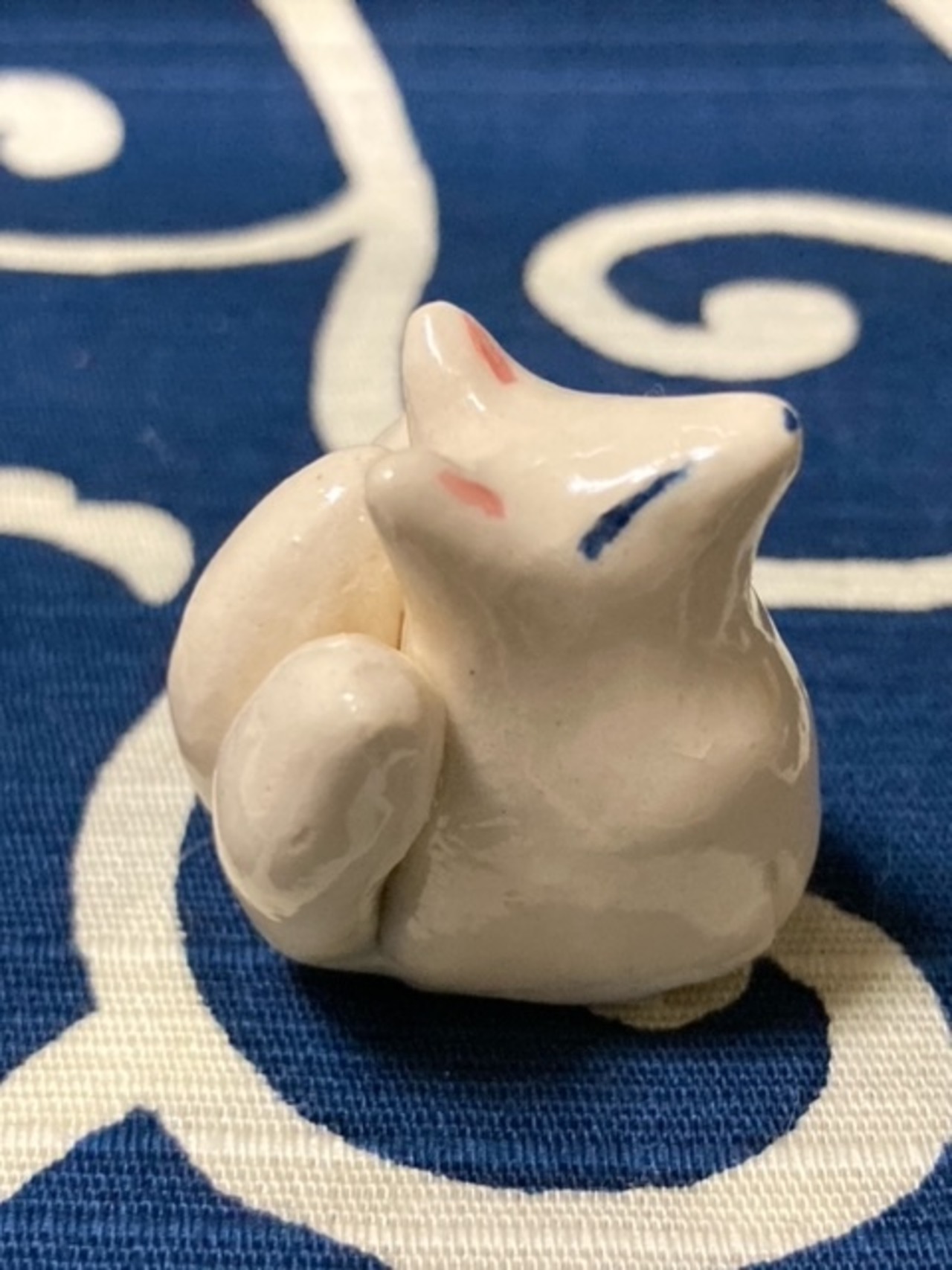 そらある謹製の陶器製の三尾狐置物です。
