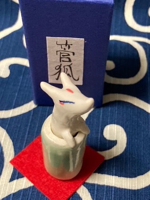 そらある謹製の陶器製の管狐の「置物です。