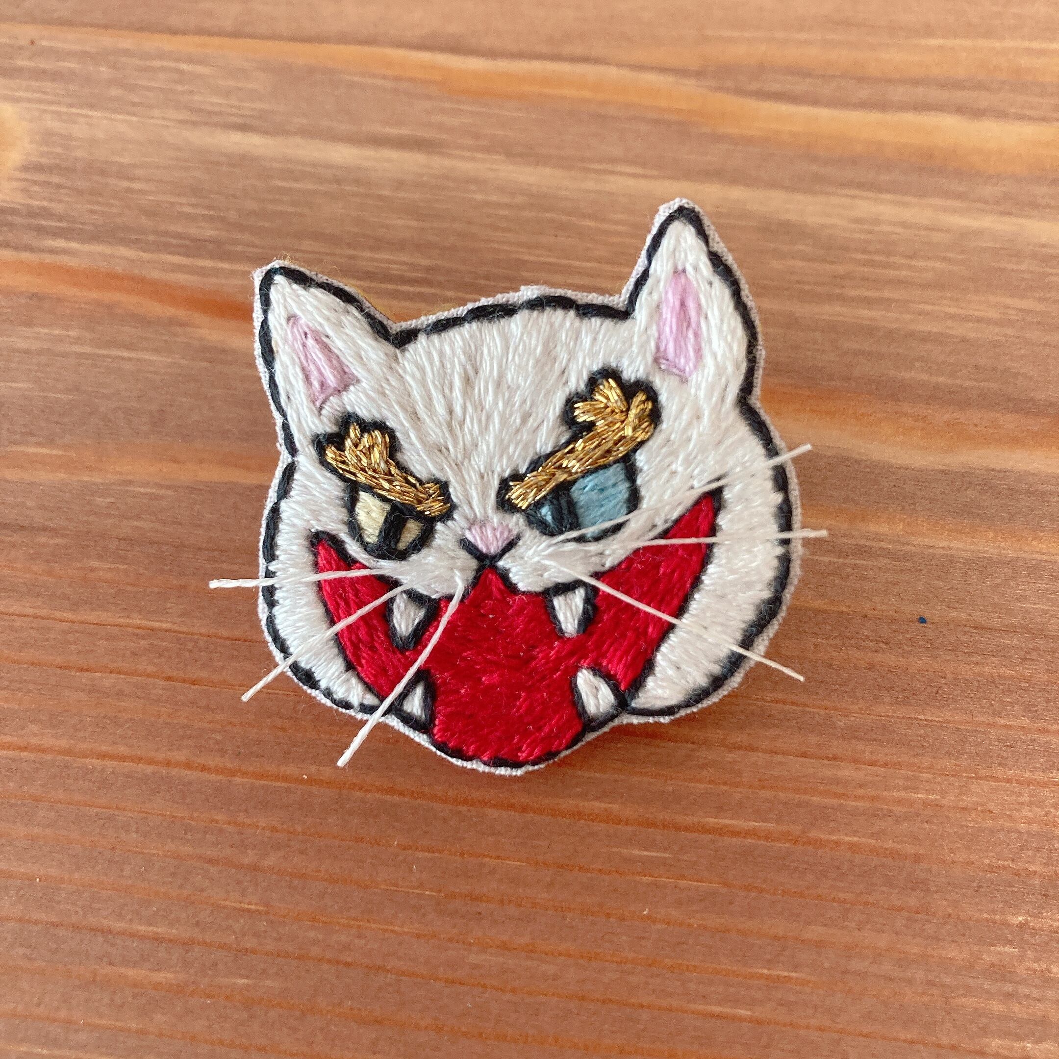 【ainsel】yb015 手刺繍妖怪ブローチ 猫又(シロ)