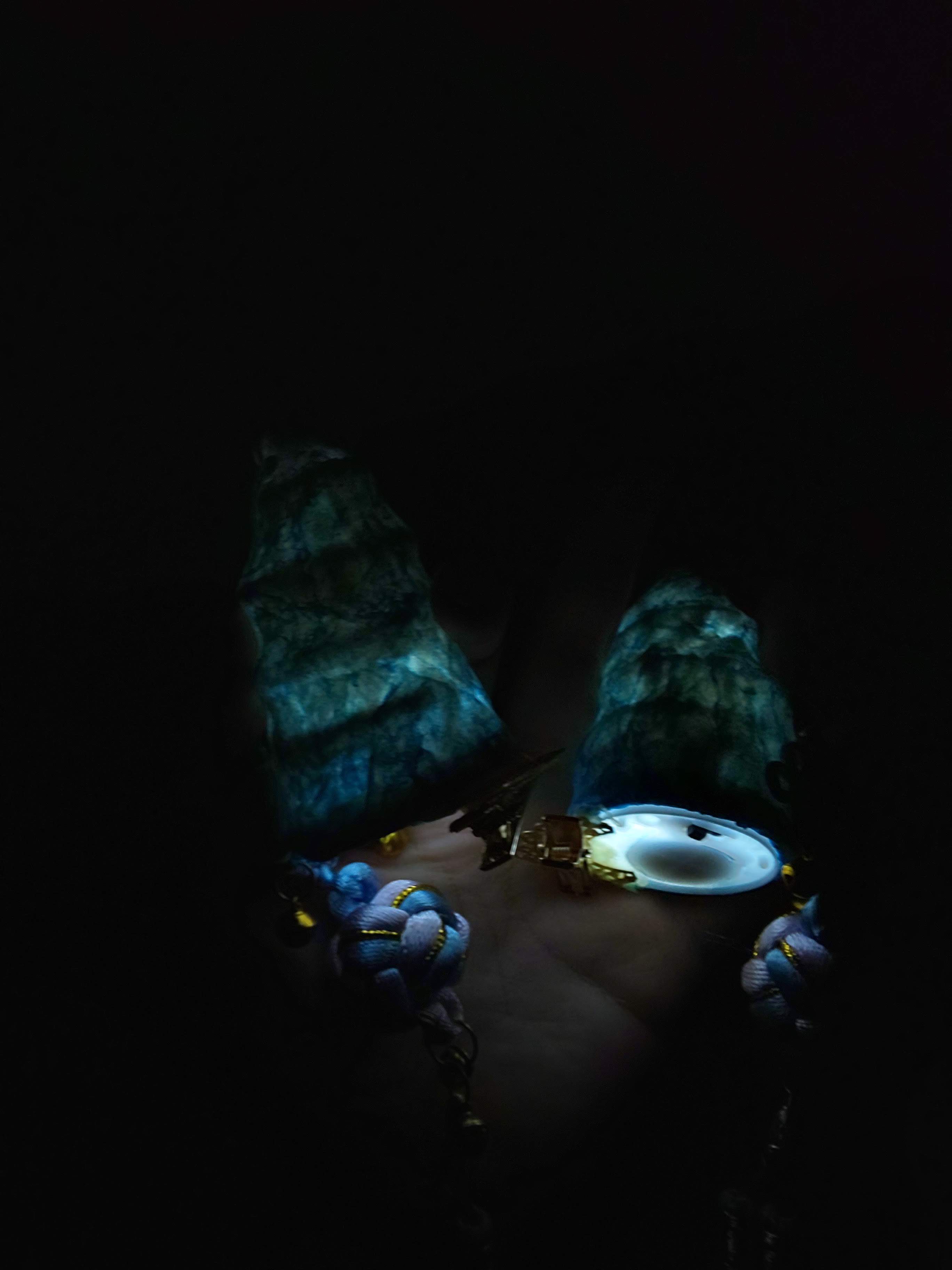 角内にLEDライトが仕込まれているため、光らせることができます。