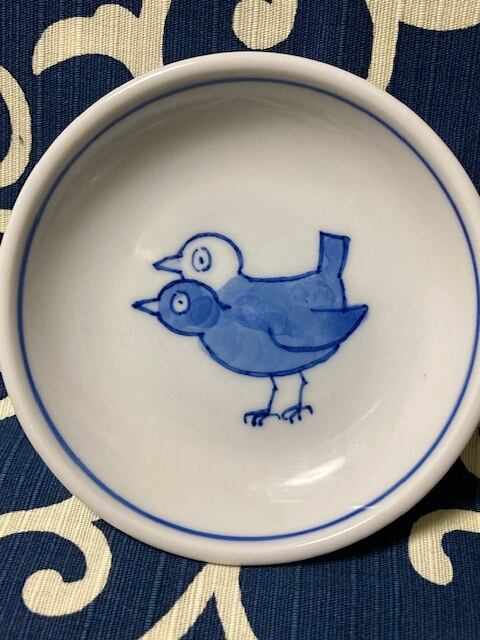 そらある謹製の陶器製のヨゲンノトリの小皿です。