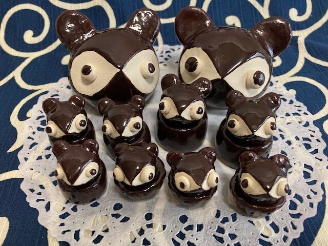 そらある謹製の陶器製のケーキ狸のオブジェです。