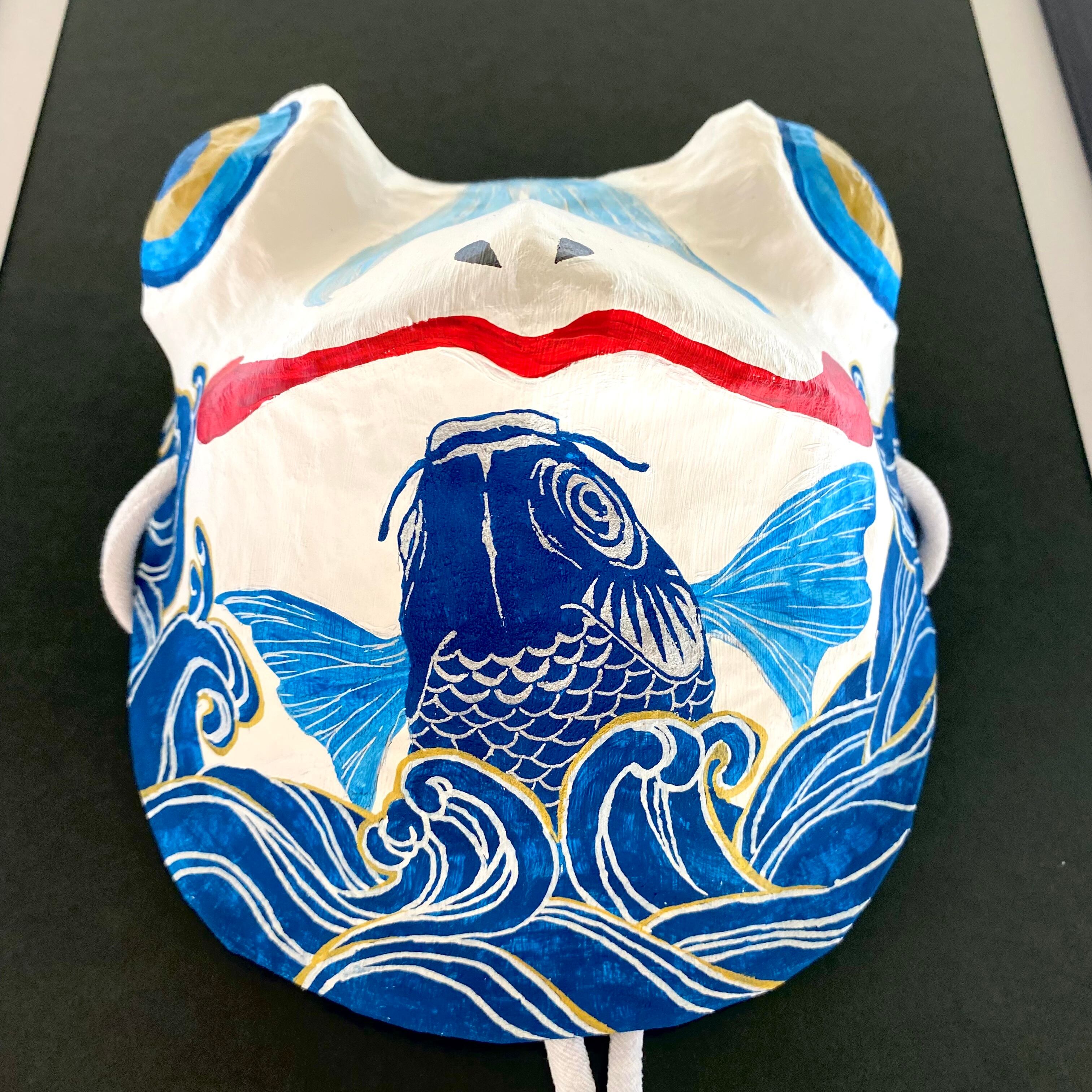 大胆で繊細な鯉と美しい和色【濃縹(こきはなだ)】が映える蛙面です。
