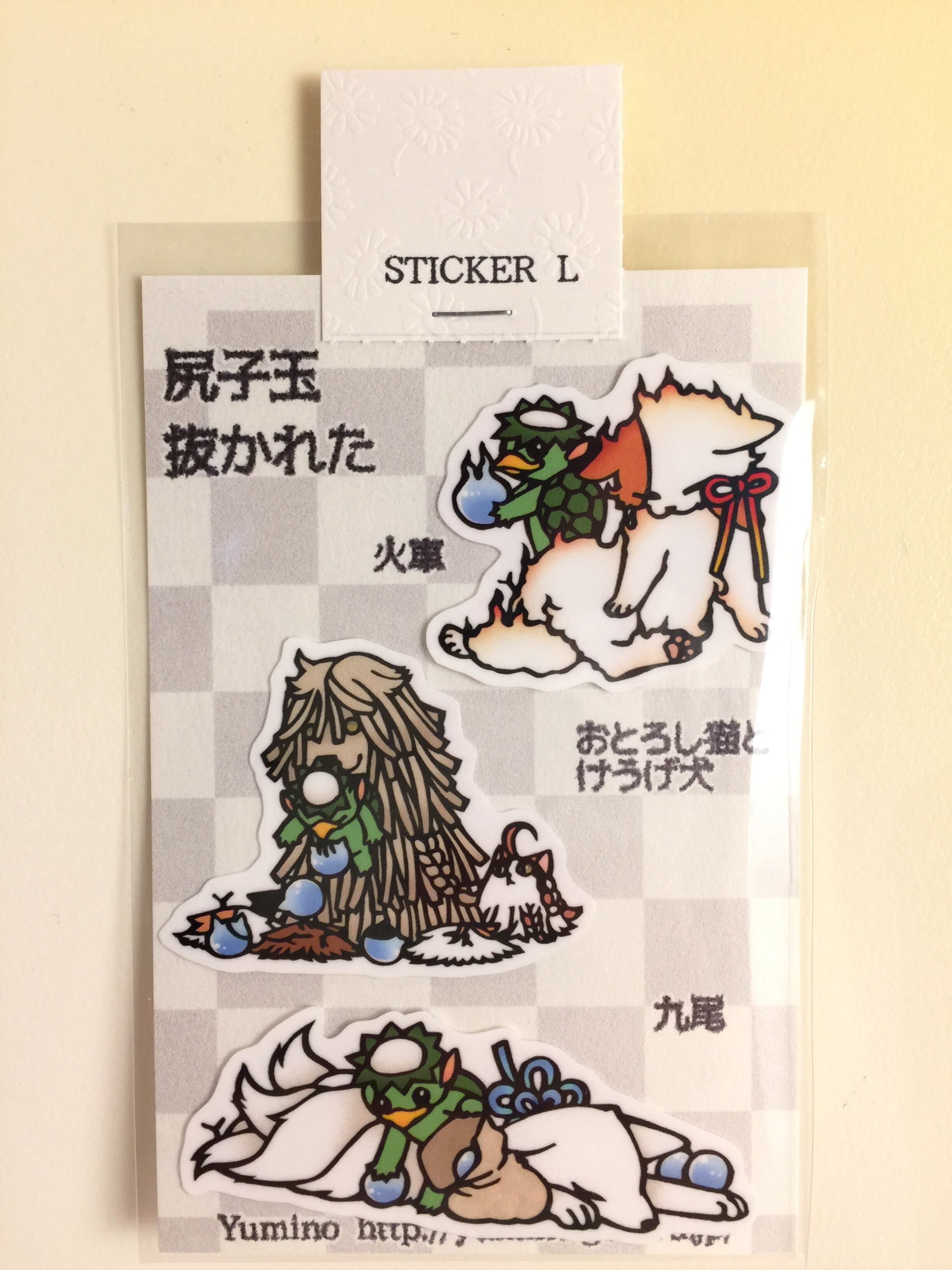 【Yumino】L-22 ステッカーL 尻子玉抜かれた(九尾と火車とおとろし猫とけうげ犬)