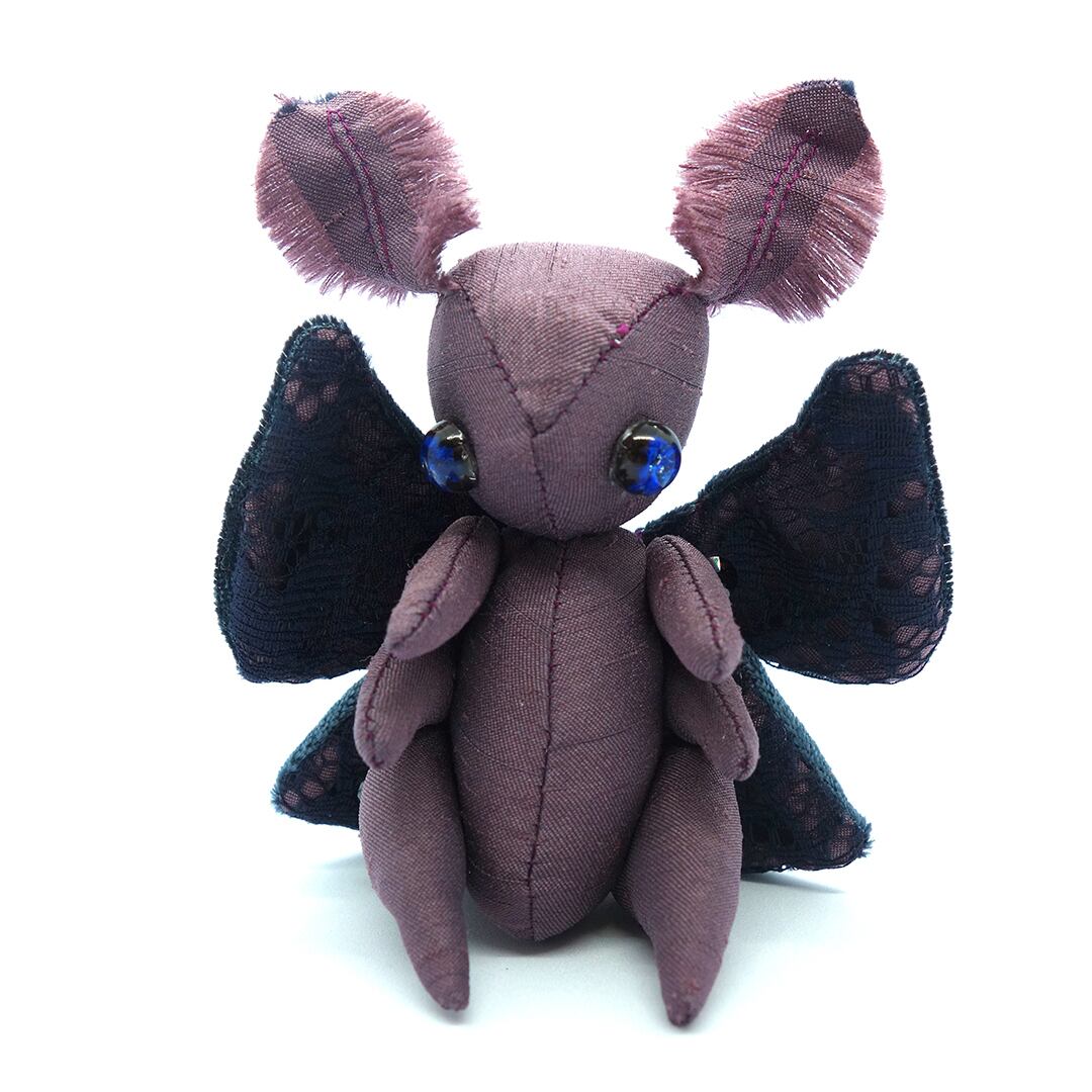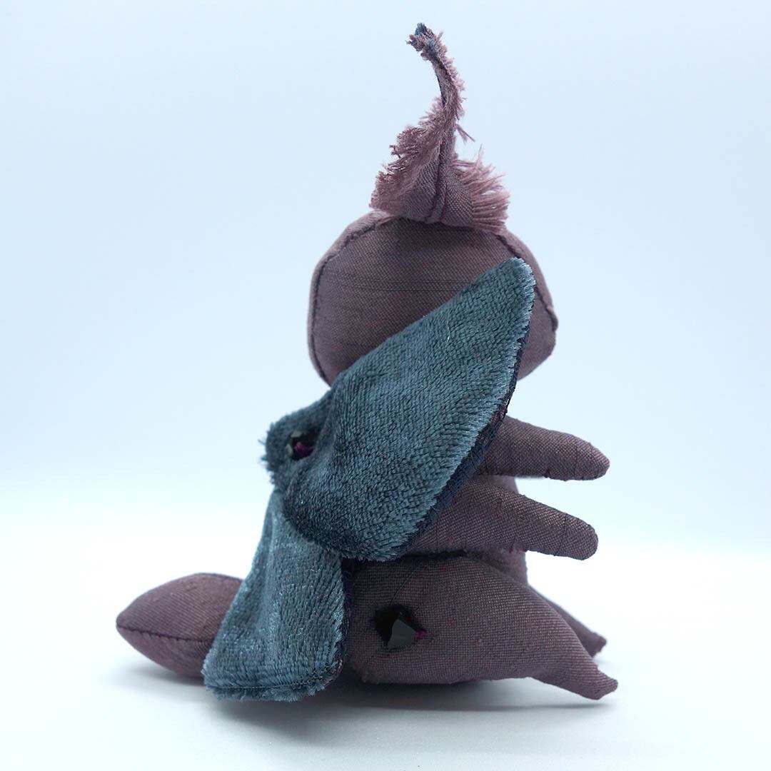 ヤママユガ科をイメージした紫の蛾のぬいぐるみ。