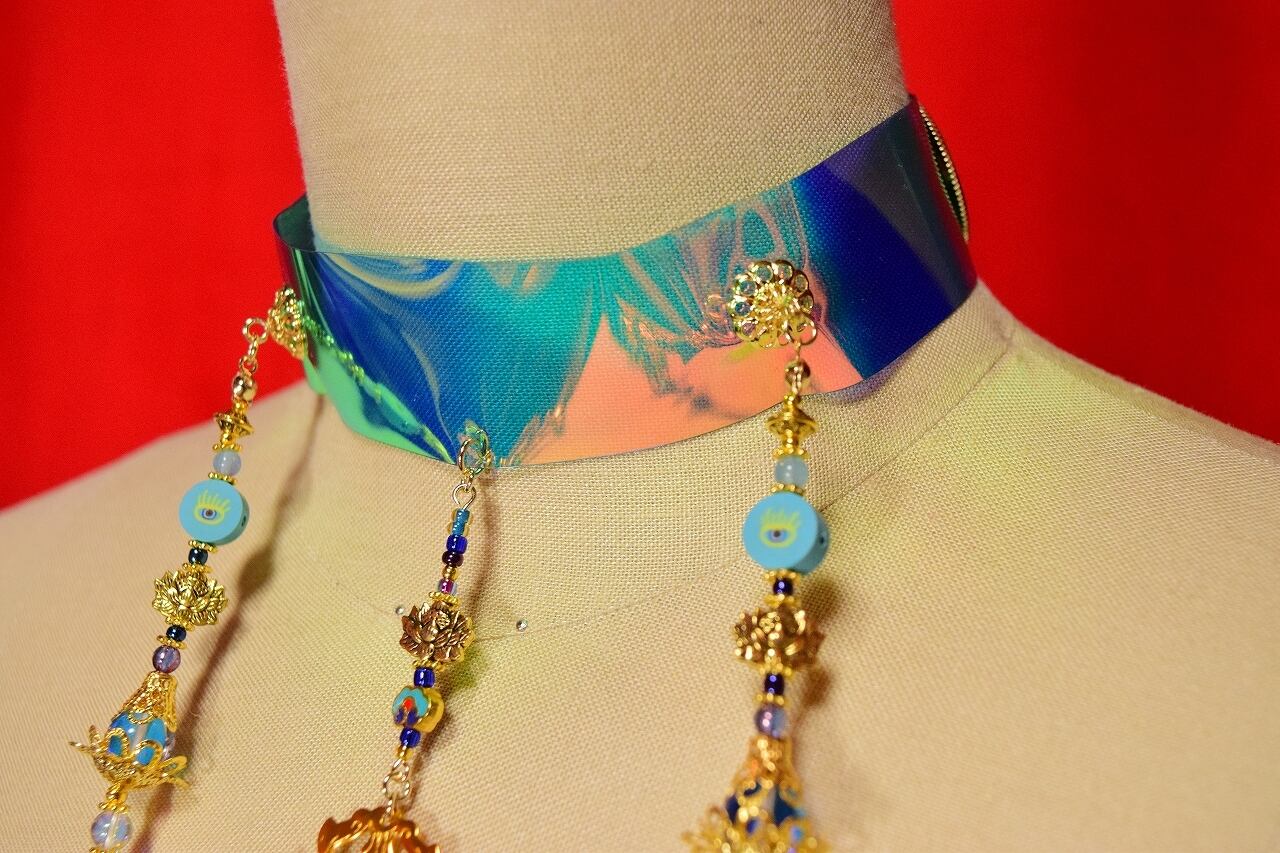 備考:オーロラ緑ビニールチョーカー/タッセル配色青