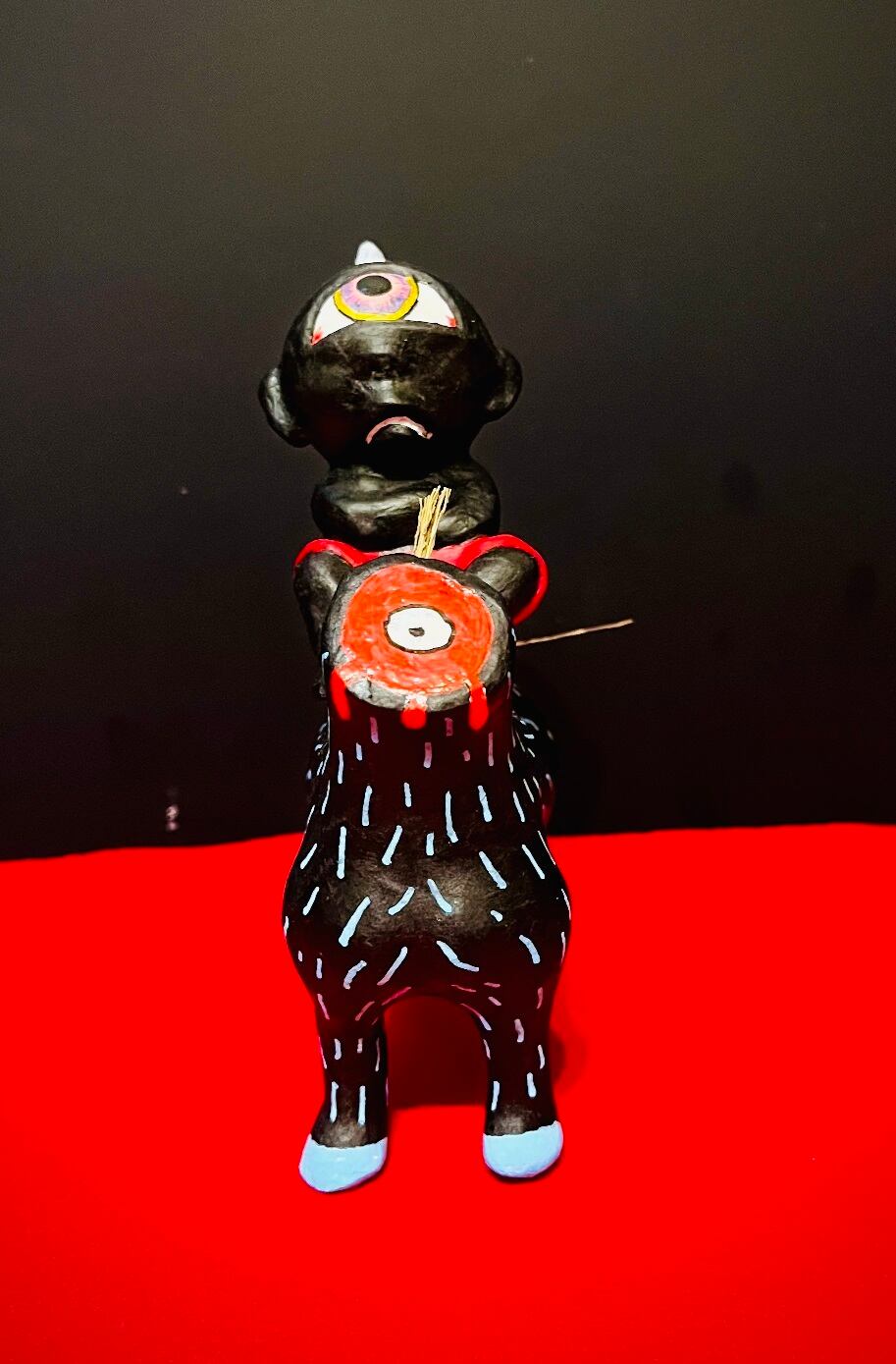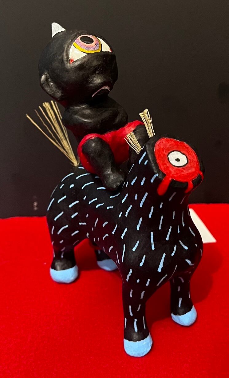 素材:石塑粘土に和紙貼り、黒(首なし馬の毛色:金)