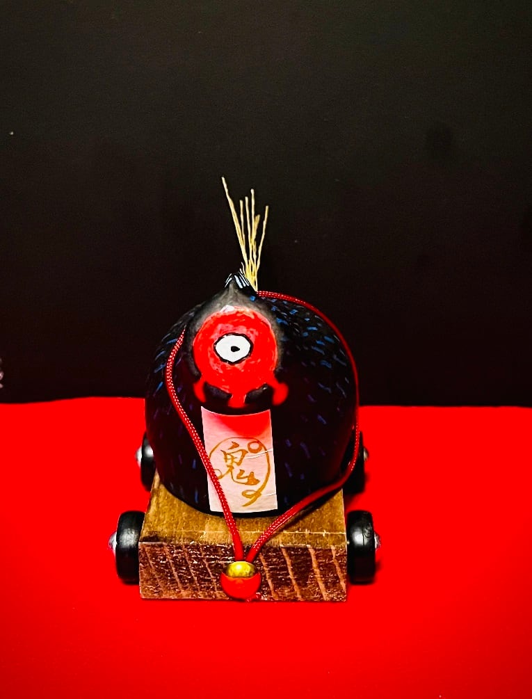 素材:石塑粘土に和紙貼り、黒(毛色:青)