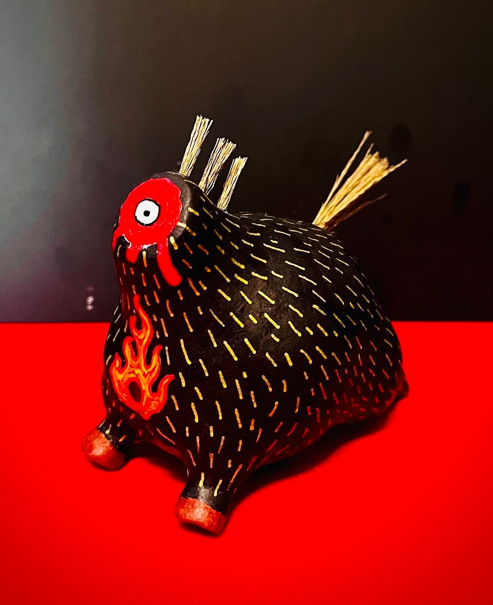 童子商店謹製。夜行さんが乗っている首無し馬の張子人形です。