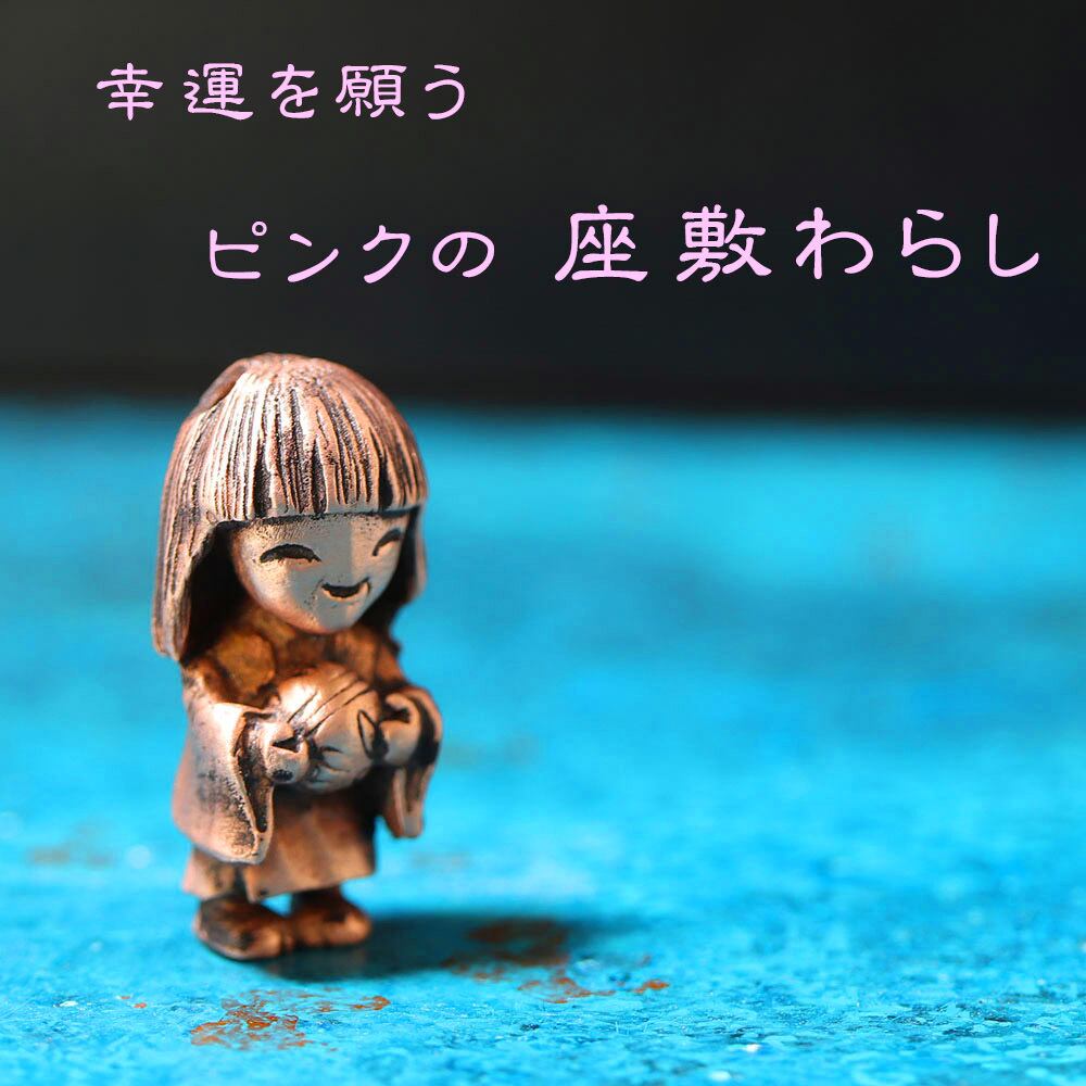 ピンクの「座敷わらし」の純銅の根付(ストラップ)です。