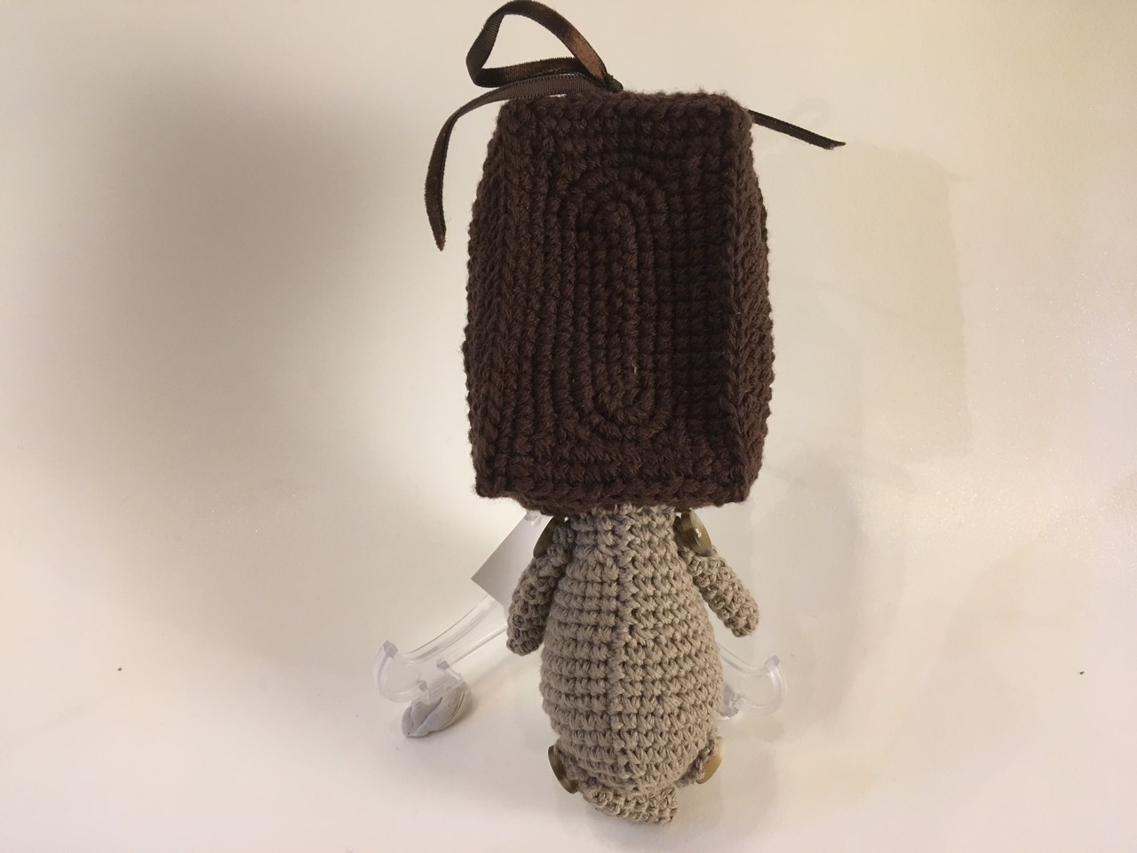 糸、体部分の中身化繊綿、時計部分にちょっと物が入り、閉じてからリボンを結びます、持ち手付き。